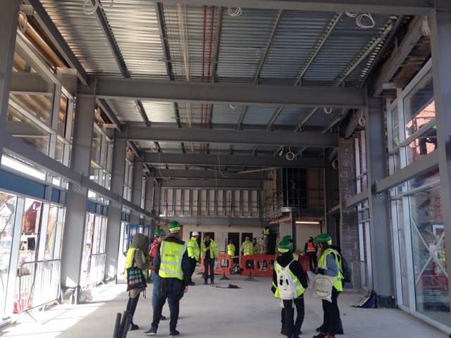 Today we visited the bus station site to see the progress they are at with building. it was great to stand inside and experience what was to come , it was also lovely to see where our designs were going to be and to hear they're thoughts on our big/ how many (of) our designs were going to be.